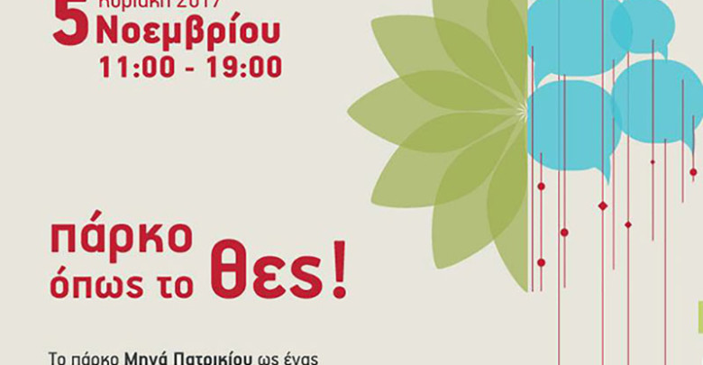 Η Διοργάνωση της πιλοτικής δράσης με τίτλο «Πάρκο όπως το θες», την Κυριακή 5 Νοεμβρίου, ώρα 11:00 – 19:00, έρχεται ως συνέχεια των εργαστηρίων συμμετοχικού σχεδιασμού της Ε’ Δημοτικής κοινότητας και άλλων τμημάτων του Δήμου Θεσσαλονίκης, που υλοποιήθηκε σε συνεργασία με τους κατοίκους περιοχής του πάρκου Μηνά Πατρικίου.