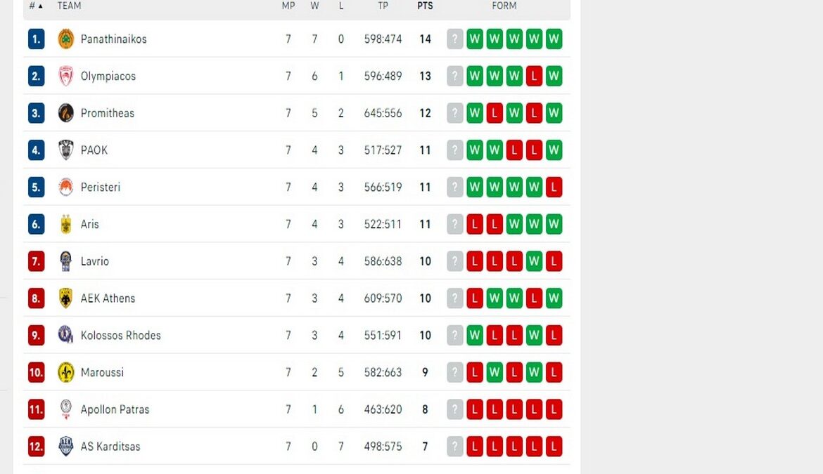 Ο Παναθηναϊκός την Δευτέρα κέρδισε δύσκολα την ΑΕΚ με 86-85, με σημαντικά καλάθια του Ναν στο τέλος. Δείτε πώς διαμορφώθηκε η βαθμολογία μετά το τέλος της 7ης αγωνιστικής…