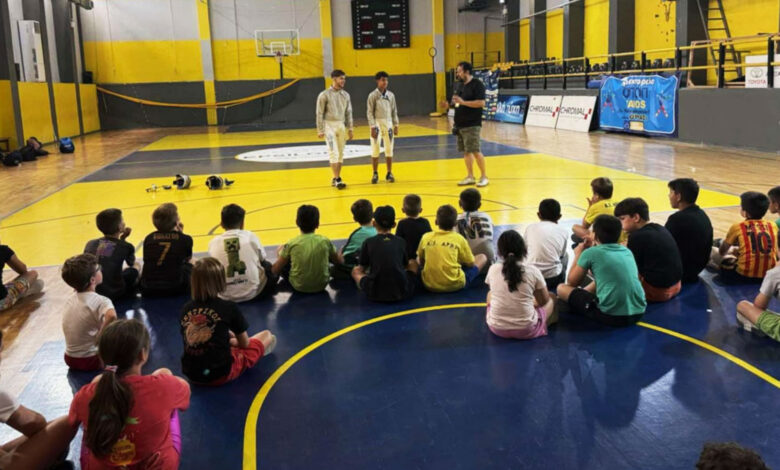 Στο γήπεδο βόλεϊ της θύρας 3 του «Κλεάνθης Βικελίδης» παραβρέθηκαν δύο από τους σπουδαιότερους αθλητές του Άρη στο άθλημα της ξιφασκίας, τα αδέρφια Θωμάς και Αριστοτέλης Γρόλλιος. Οι δύο αθλητές μίλησαν στα παιδιά για το εντυπωσιακό άθλημα της ξιφασκίας, τα επιτεύγματά τους και έδειξαν τον εξοπλισμό του αθλήματος.