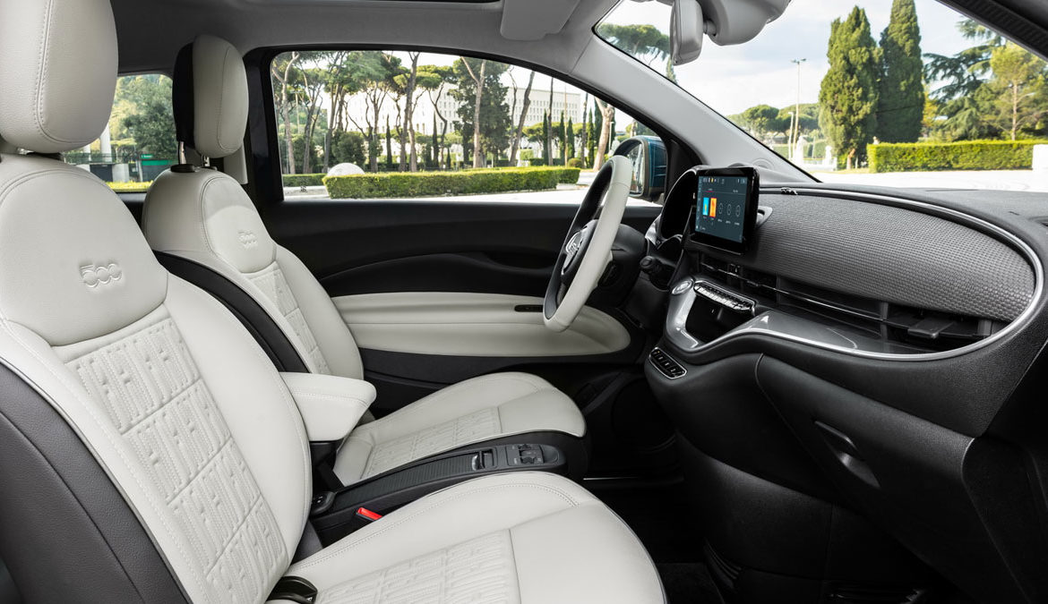 Το ηλεκτρικό χάτσμπακ 500 υιοθετεί ένα ηλεκτρικό μοτέρ 118 ίππων που δίνει στο αυτοκίνητο χρόνο 9” για το σπριντ των 0-100 km/h. Η μπαταρία είναι μεγάλη με τα μέτρα του αυτοκινήτου που κινείται ανάμεσα στις κατηγορίες των μίνι και σουπερμίνι. Με ενεργειακή πυκνότητα 42 kWh, η FIAT λέει ότι το 500 έχει αυτονομία 320 km στον κύκλο WLTP.