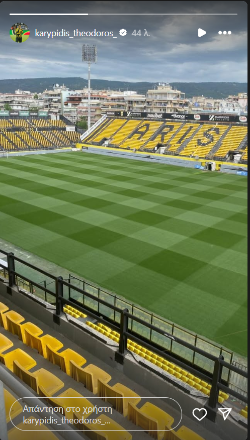 Ο Θόδωρος Καρυπίδης βρέθηκε στο γήπεδο του Άρη, αναρτώντας μια φωτογραφία στο instagram, η οποία δείχνει την εξαιρετική κατάσταση του αγωνιστικού χώρου, ενόψει και του αγώνα του Σαββάτου, απέναντι στον Αστέρα.