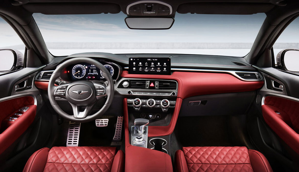 Στο εσωτερικό βρίσκουμε επενδύσεις από δέρμα και υλικά υψηλής ποιότητας και οθόνη αφής 10,25″ στην κορυφή της κεντρικής κονσόλας που φιλοξενεί το αναβαθμισμένο infotainment της Genesis.