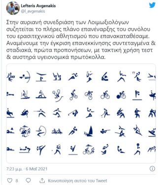 Γνωστό έκανε μέσω ανάρτησής του στο twitter o Λευτέρης Αυγενάκης, πως στην αυριανή συνεδρίαση των λοιμωξιολόγων θα τεθεί επί… τάπητος το θέμα για την επανέναρξη του συνόλου του ερασιτεχνικού αθλητισμού.