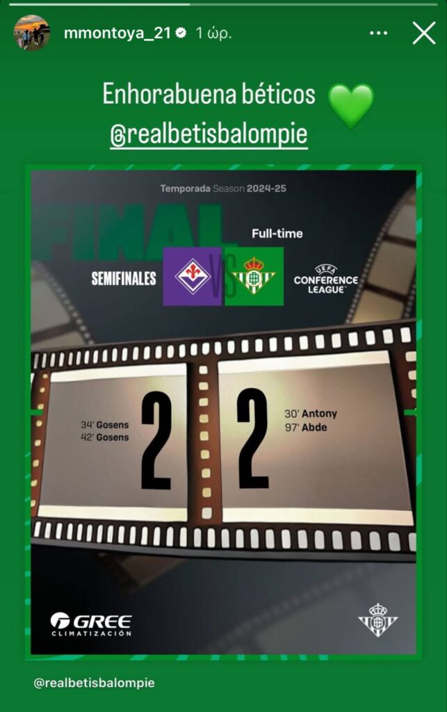 Το ίδιο έπραξε και ο Μάρτιν Μοντόγια. Όχι ως παιδί της Ανδαλουσίας, αλλά λόγω της τριετίας του στη Μπέτις από το 2020 έως το 2023 που αποφάσισε να συνεχίσει την καριέρα του στον Άρη.