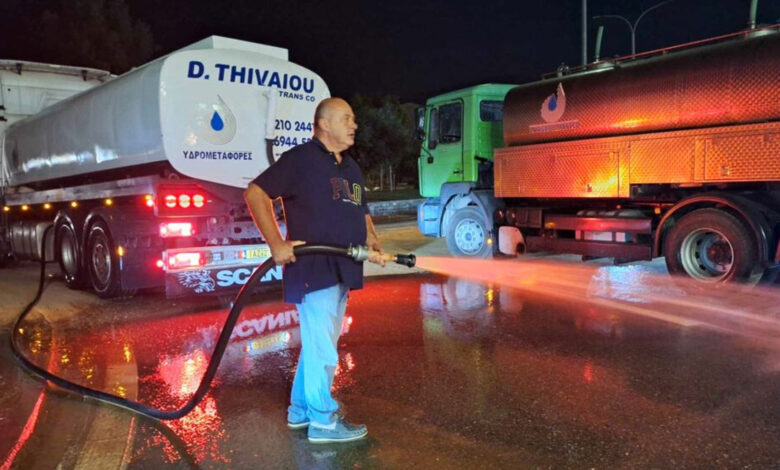 Το βράδυ του Σαββάτου, ο κ. Μπέος είχε μαζί του και τον γιο του, ο οποίος συμμετείχε στις εργασίες πλυσίματος του οδοστρώματος.