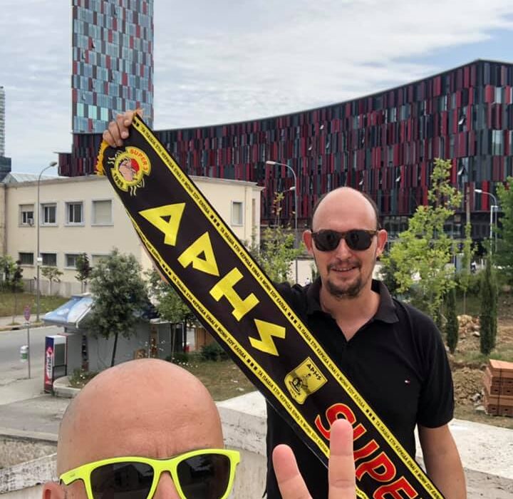 Ο κόσμος του Άρη πάντως ήδη γνωρίζει τα κατατόπια έξω από το Air Albania Stadium. Συγκεκριμένα δύο φίλοι του Άρη βρέθηκαν έξω από το γήπεδο που θα φιλοξενήσει τον τελικό της διοργάνωσης, βγάζοντας φωτογραφία με κασκόλ της αγαπημένης τους ομάδας και ελπίζοντας ότι θα… ξαναβρεθούνε εκεί.