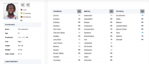 Για να πλαισιώσει τον Λορέν Μορόν στη θέση του κεντρικού επιθετικού αποκτήθηκε από τον Άρη ο Τίνο Καντεβέρε, με τον διεθνή φορ από τη Ζιμπάμπουε να αξιολογείται από το Football Manager.