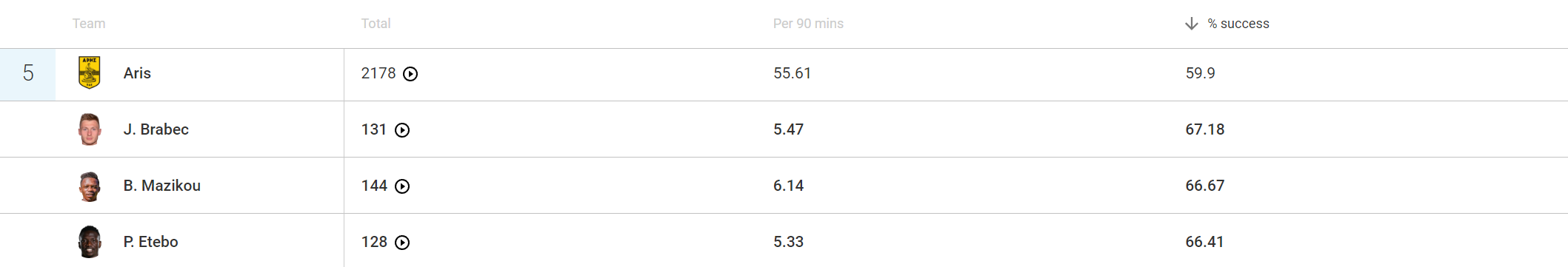 Ο διεθνής ποδοσφαιριστής είχε 57,2 πάσες ανά παιχνίδι με το εξαιρετικό 92,29% το οποίο τον κατατάσσει ανάμεσα στους κορυφαίους σε ολόκληρο το πρωτάθλημα στον συγκεκριμένο τομέα. Ακόμη είχε 78,1% επιτυχία στις πάσες στο τελευταίο τρίτο του παιχνιδιού.