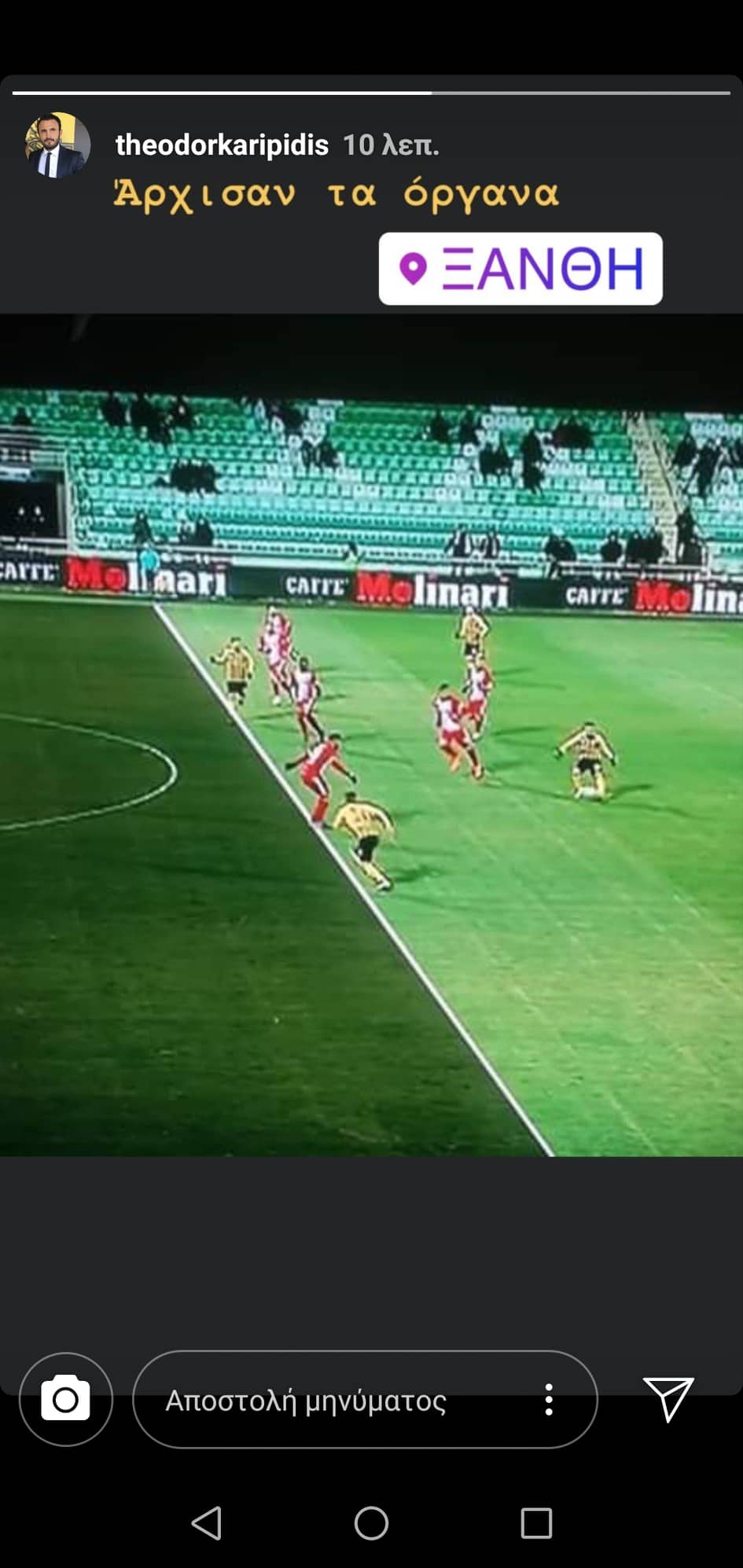 Ο ισχυρός άνδρας της ΠΑΕ έδειξε την αγανάκτηση του με ανάρτηση του στα social media, ανεβάζοντας φωτογραφία- στιγμιότυπο της φάσης και γράφοντας: «Άρχισαν τα όργανα»