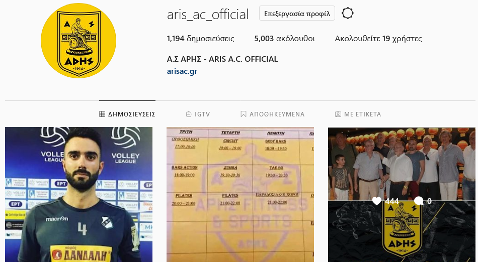 Σημαντική η αύξηση των followers στο Instagram του Α.Σ. Άρης.
