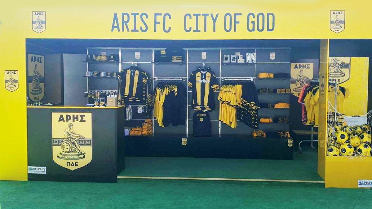 Στο περίπτερο θα λειτουργήσει και η μπουτίκ της ΠΑΕ Άρης, από την οποία οι επισκέπτες θα μπορούν να προμηθεύονται τα επίσημα προϊόντα της ομάδας μας.