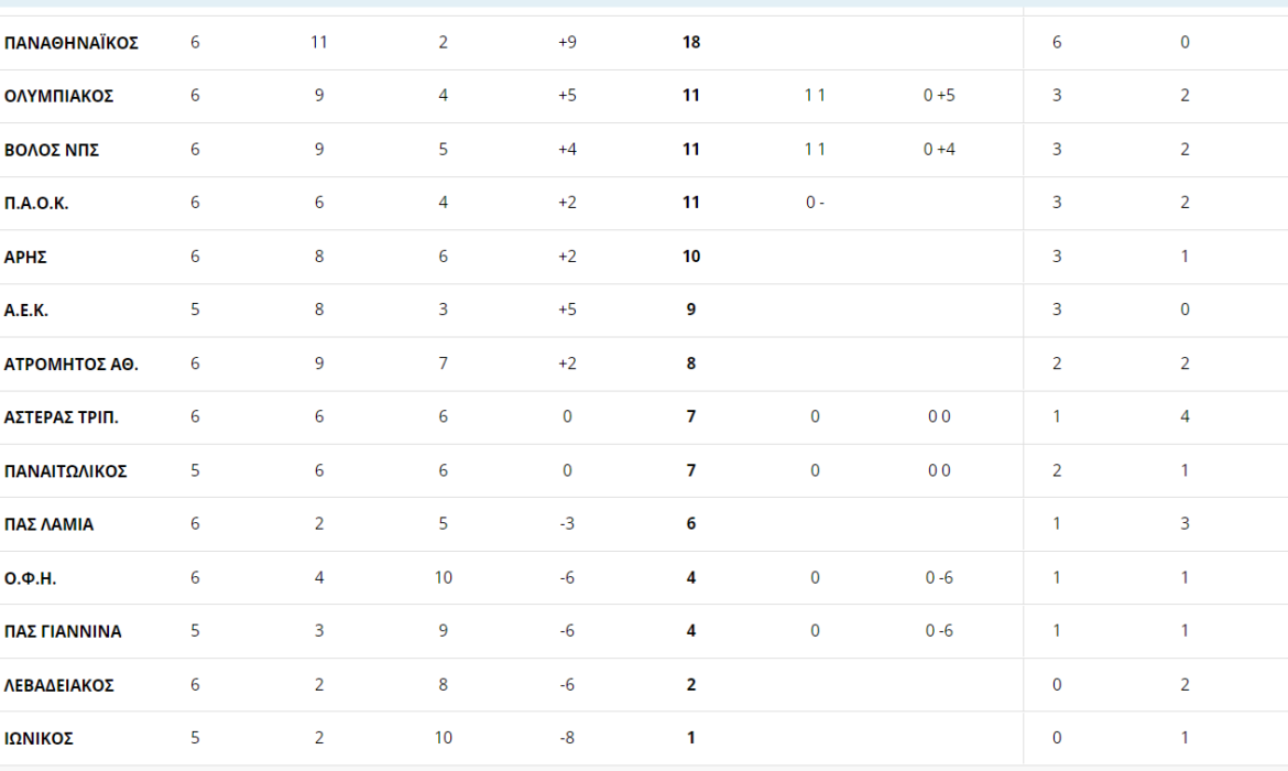 Ολοκληρώθηκαν τα παιχνίδια της Κυριακής για την 6η αγωνιστική του πρωταθλήματος, με τον Παναθηναϊκό να κερδίζει τον ΠΑΟΚ με 1-2 στην Τούμπα. Για τον Άρη ακολουθεί το παιχνίδι με την ΑΕΚ. Δείτε την βαθμολογία της Super League: