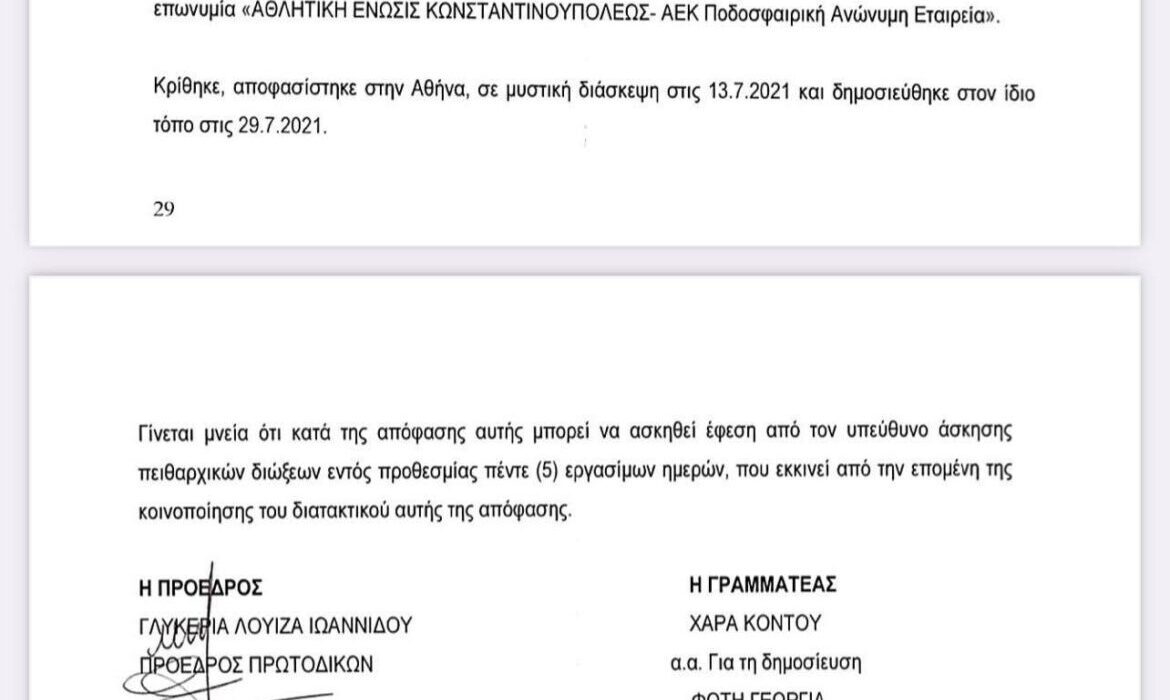 Αθώοι κρίθηκαν οι ΑΕΚ και Δημήτρης Μελισσανίδης από την Επιτροπή Δεοντολογίας.