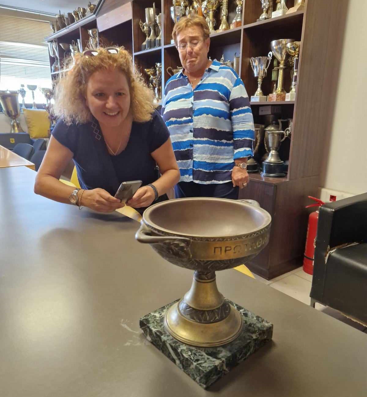 Και εμείς από την πλευρά μας θέλουμε να ευχαριστήσουμε την επισκέπτριά μας, που ήρθε από ένα τόσο μακρινό μέρος, όπου κρατάει άσβεστη την φλόγα του ΑΡΗ για τόσες δεκαετίες.