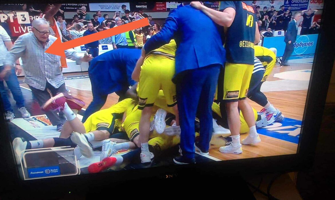 Συγκεκριμένα, άτομο από τα courtside seats του Προμηθέα κλώτσησε παίκτη του Άρη κατά τη διάρκεια των πανηγυρισμών, όπως θα δείτε παρακάτω.
