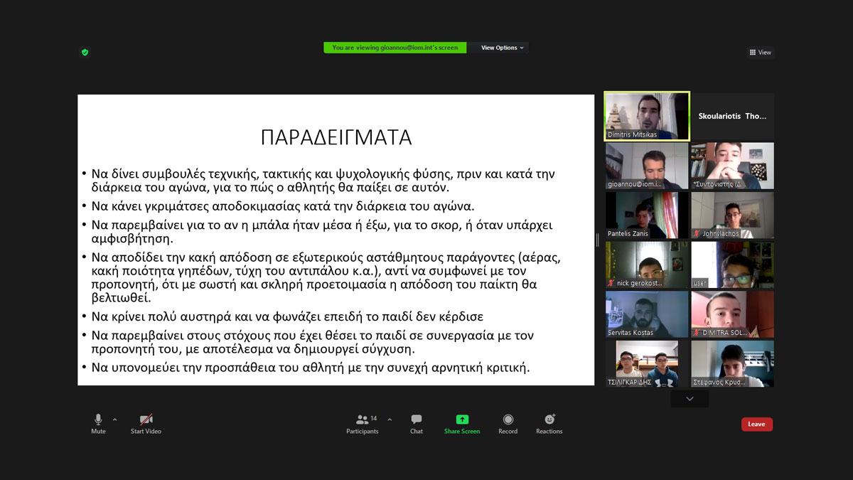 Στο πλαίσιο των συνεδριών από τον κλινικό αθλητικό ψυχολόγο, Γιώργο Ιωάννου, με τους αθλητές της εφηβικής, της παιδικής και της προπαιδικής ομάδας μπάσκετ του συλλόγου και με τη συμμετοχή των προπονητών της Ακαδημίας, έγινε διαδικτυακή συνδιάσκεψη με θέμα «ο ρόλος των γονέων στον αθλητισμό».