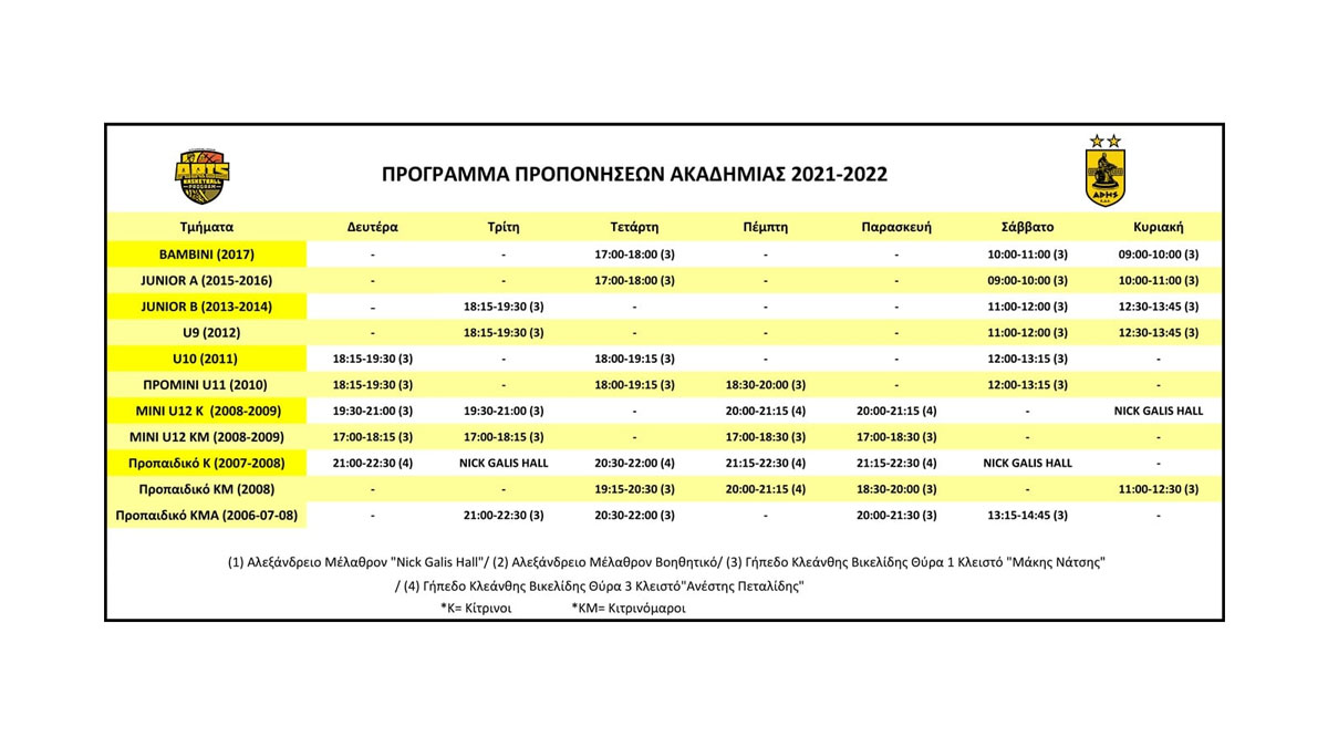 Η έναρξη των Ακαδημιών θα γίνει τη Δευτέρα 6/9 και οι εγγραφές συνεχίζονται καθημερινά».