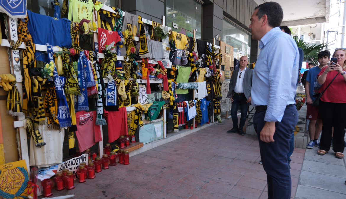 Ο Αλέξης Τσίπρας βρέθηκε στο σημείο όπου δολοφονήθηκε ο Άλκης Καμπανός όπου και άφησε ένα λουλούδι.