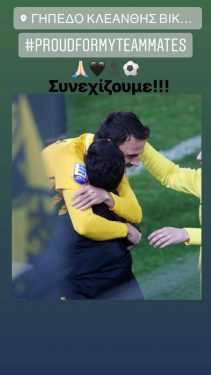 Φωτογραφίες του αγώνα, όπου ο φωτογραφικός φακός “συνέλαβε” τον ίδιο να αγκαλιάζει τον Ματίγια μετά το γκολ του. Ο τερματοφύλακας, αν και δεν μέτρησε λεπτά συμμετοχής, πανηγύρισε μαζί με την ομάδα του το 1-0. Καθώς επίσης και μετά την ισοπαλία, έγραψε “περήφανος για την ομάδα μου…Συνεχίζουμε.”