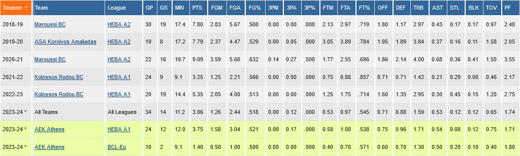 Τη σεζόν 2020-21 επέστρεψε στο Μαρούσι και τις επόμενες δύο χρονιές αγωνίστηκε στον Κολοσσό Ρόδου. Το καλοκαίρι του 2023 επέστρεψε στην ΑΕΚ και από φέτος ανήκει στο δυναμικό του ΑΡΗ Midea.
