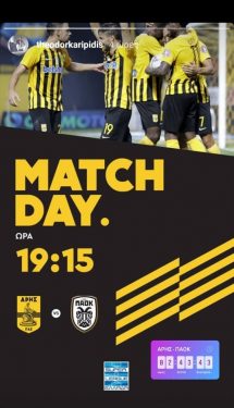 Σε λίγες ώρες ξεκινά το ντέρμπι μεταξύ Άρη και ΠΑΟΚ στο «Κλεάνθης Βικελίδης» και όπως φαίνεται για τον αγώνα ανυπομονεί και ο Θοδωρής Καρυπίδης.