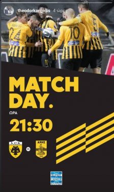 Και ο Θοδωρής Καρυπίδης ανυπομονεί για το σημερινό παιχνίδι όπου ο Άρης αντιμετωπίζει εκτός έδρας την ΑΕΚ στις 21:30 στο πλαίσιο της 3ης αγωνιστικής των πλέι οφ.
