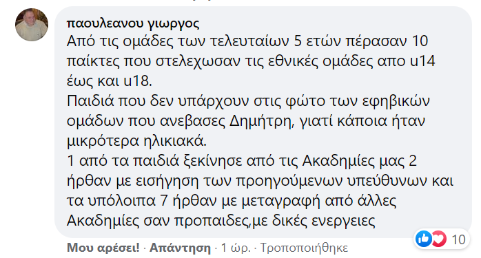 «Από τις ομάδες των τελευταίων 5 ετών πέρασαν 10 παίκτες που στελέχωσαν τις Εθνικές ομάδες από u14 έως και u18. Παιδιά που δεν υπάρχουν στις φωτογραφίες των εφηβικών γιατί κάποια ήταν μικρότερα ηλικιακά.