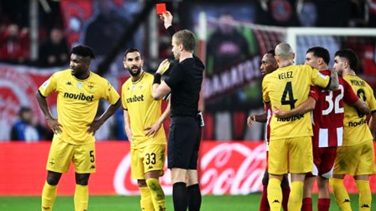 Έτσι ο Άρης καλείται να ολοκληρώσει το ντέρμπι με έναν ποδοσφαιριστή λιγότερο.