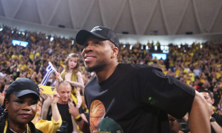 Ο Γιάννης Αντετοκούνμπο δήλωσε στο μικρόφωνο εν μέσω αποθέωσης: “Φοβερή ατμόσφαιρα, παιδιά ευχαριστώ πολύ για όλα”.