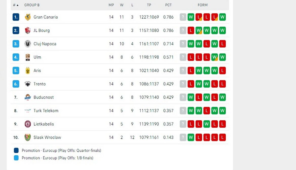 Ολοκληρώθηκαν όλα τα ματς του ομίλου του Άρη, με την έκπληξη να γίνεται στην Πολωνία, όπου η Σλασκ κέρδισε την Ουλμ με 100-88, Από εκεί και πέρα, η Τουρκ Τέλεκομ κέρδισε την Τρέντο, όπως και η Μπούντουτσνοστ την Μπουργκ ενώ η Γκραν Κανάρια επιβλήθηκε της Λιεκαμπέλις.