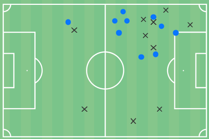 Ο Κλέιτον Ντιαντί στη διάρκεια της παρουσίας του στο ματς έδωσε 20 μάχες, εκ των οποίων κέρδισε τις 10, ένα καλό ποσοστό δεδομένου ότι οι περισσότερες εξ αυτών ήταν μπροστά από το κέντρο και στο τελευταίο τρίτο του γηπέδου.