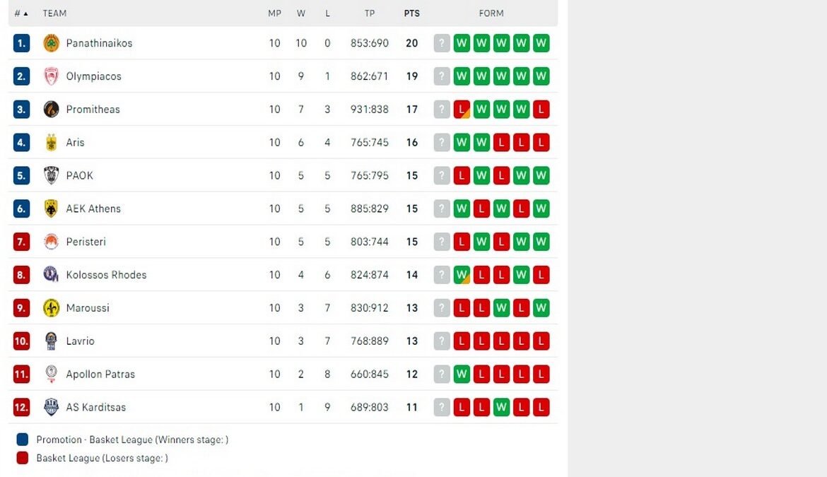 Την Δευτέρα έγινε το τελευταίο ματς της 10ης αγωνιστικής, με τον Ολυμπιακό να κερδίζει την Καρδίτσα με 54-83. Δείτε, πώς έχει διαμορφωθεί η βαθμολογία του πρωταθλήματος…