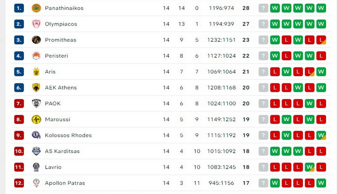 Αυτή είναι η βαθμολογία μετά την ολοκλήρωση της 14ης αγωνιστικής (pic)
