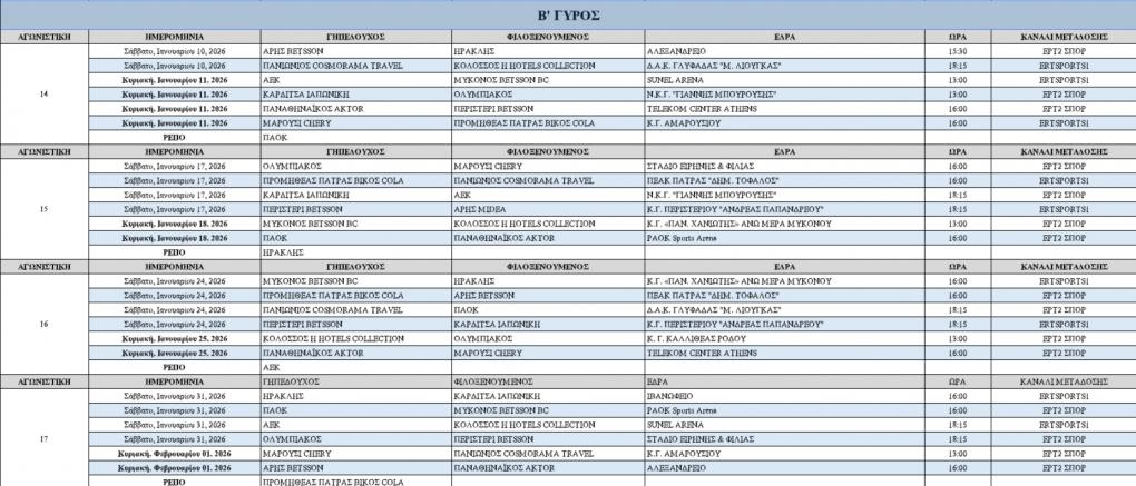 Αυτό είναι το πρόγραμμα στον δεύτερο γύρο του πρωταθλήματος (pic)