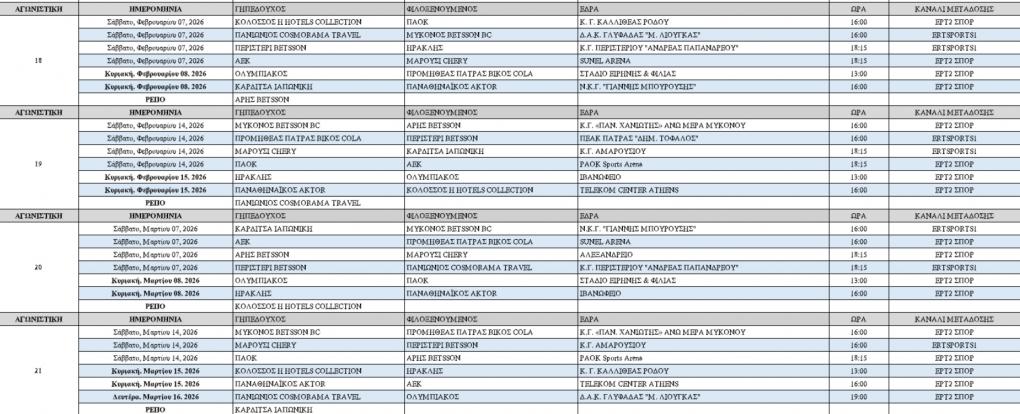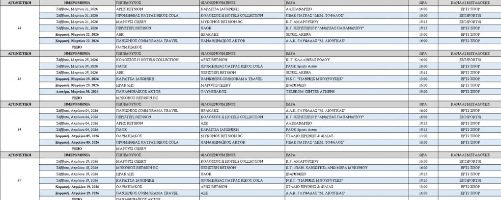 Δείτε πότε θα διεξαχθούν οι αγώνες.
