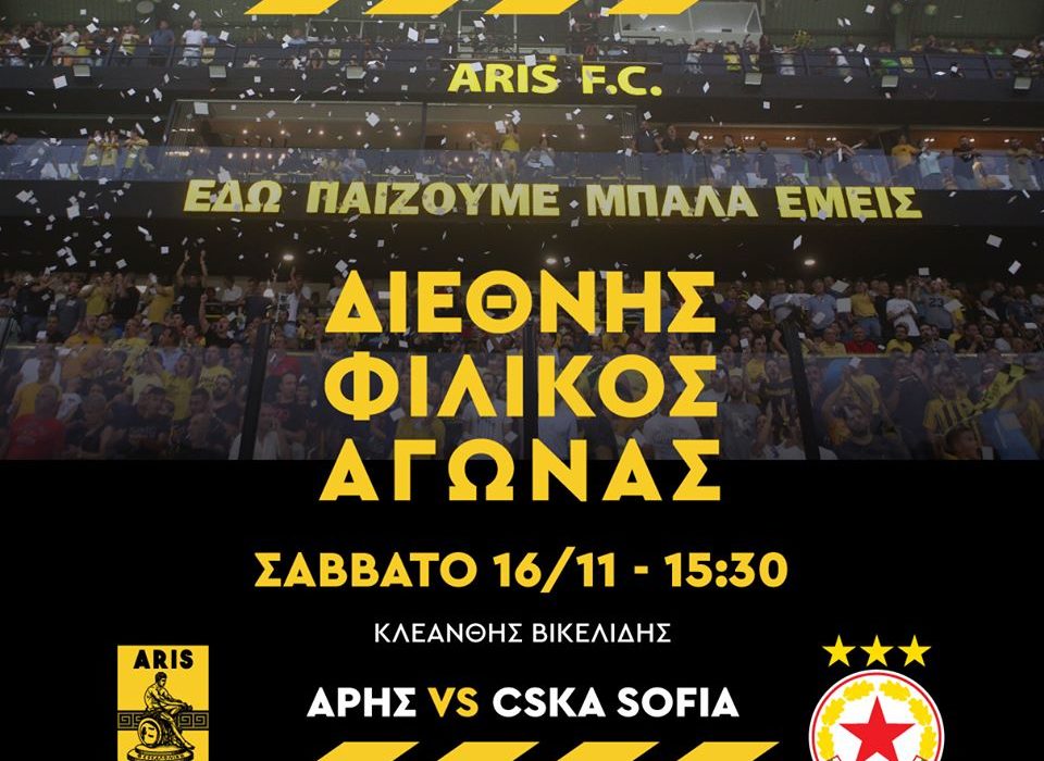 Αύριο θα διεξαχθεί ο φιλικός αγώνας ανάμεσα σε Άρη και ΤΣΣΚΑ Σόφιας (16/11, 15:30) στο «Κλεάνθης Βικελίδης».