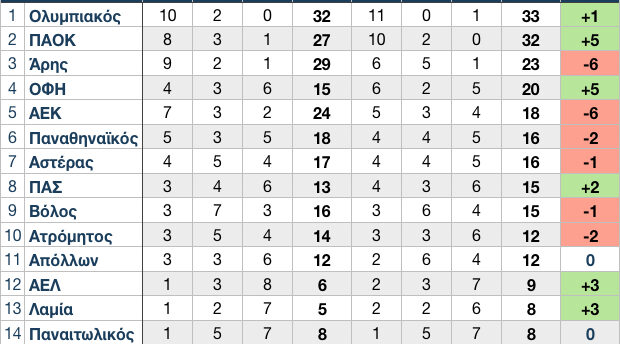 Στους 23 βαθμούς, στο -9 από τον πλέον ευνοημένο ΠΑΟΚ και στο -10 από τον επίσης ευνοημένο Ολυμπιακό θα ήταν ο Άρης σε περίπτωση που δεν υπήρχε VAR.
