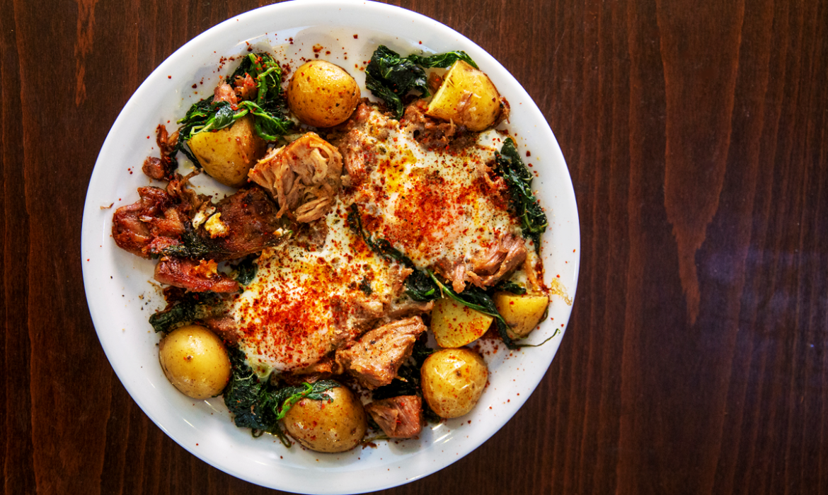Σερβίρουν, ωστόσο, μία από τις πιο νόστιμες προβατίνες σε μερίδα, έναν εξαιρετικό χειροποίητο καβουρμά με αβγό και χόρτα τσιγαριαστά κι αλοιφές όπως η ρώσικη, που φτιάχνουν εξ’ ολοκλήρου οι ίδιοι, με ολόφρεσκα υλικά, προετοιμασμένα επί τόπου.