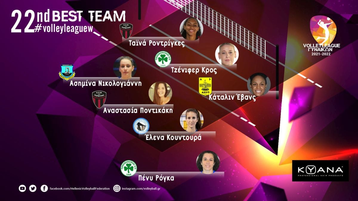Η Κάταλιν Έβανς πρωταγωνίστησε στη μεγάλη εκτός έδρας νίκη του Άρη επί της ΑΕΚ (3-2) και συμπεριλήφθηκε στην καλύτερη επτάδα της 22ης αγωνιστικής της Volley League.
