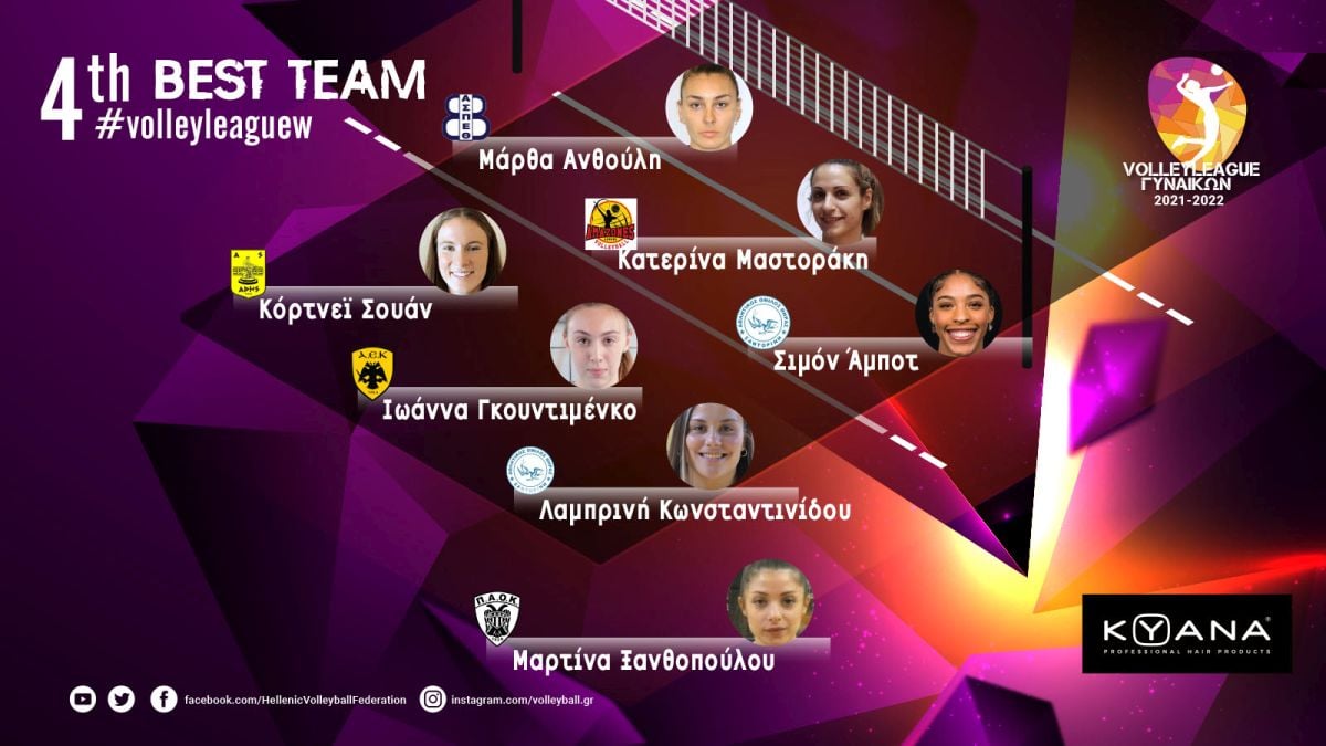 Ακραίες: Σίμον Άμποτ (Α.Ο. Θήρας) 30π. (21/51 επ., 6 άσσοι, 3 μπλοκ, 62% υπ. – 32% άριστες), Κόρτνεϊ Σουάν (Α.Σ. ΑΡΗΣ) 15π. (13/30 επ., 1 άσσος, 1 μπλοκ, 91% υπ. – 73% άριστες)