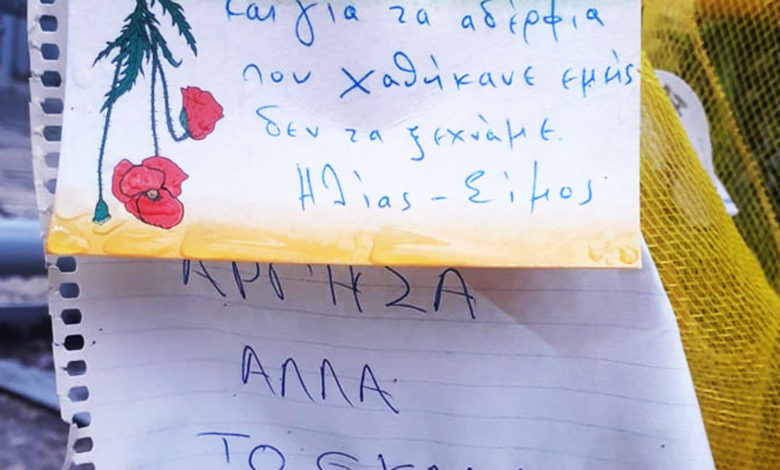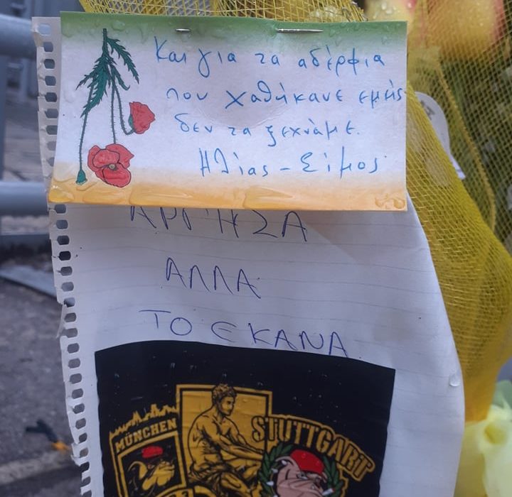 “Για τα αδέρφια που χαθήκανε εμείς δεν τους ξεχνάμε” ανθοδέσμη για τους αυτούς που έφυγαν στην είσοδο της Θύρας 3