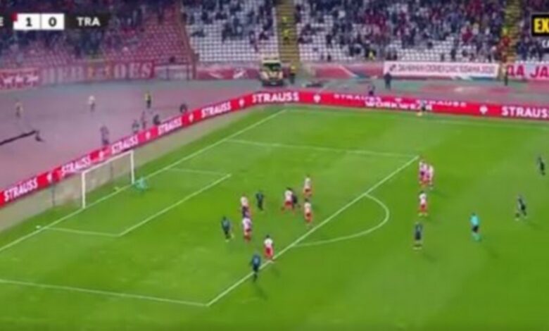 Ο Ερυθρός Αστέρας άνοιξε το σκορ με τον πρώην παίκτη του Ολυμπιακού, τον Κάταϊ και στο 39′ ο διεθνής άσος με φάουλ από τα 35 μέτρα ξεγέλασε και τον αντίπαλο γκολκίπερ με τα φάλτσα και ισοφάρισε σε 1-1.
