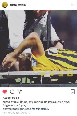 Μήνυμα στήριξης στον Μπρούνο Γκάμα έστειλε η ΠΑΕ Άρης μέσω των social media
