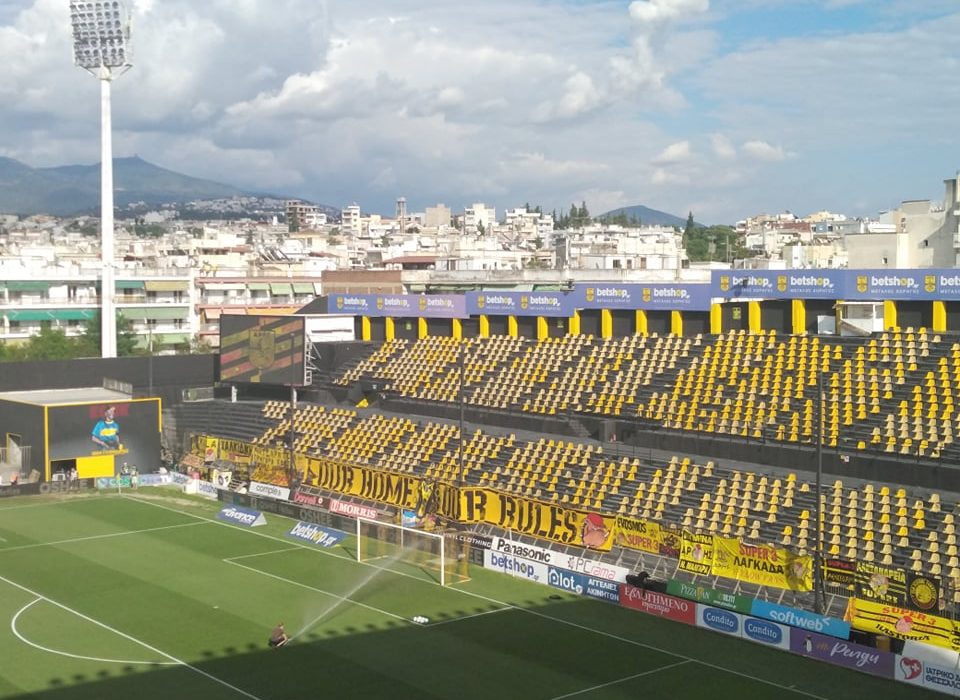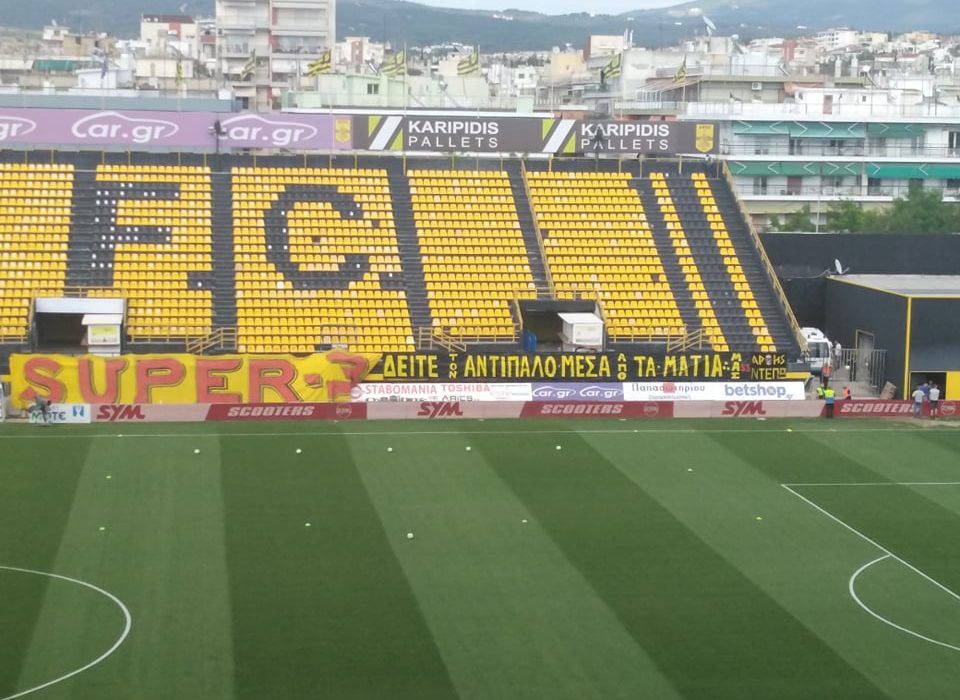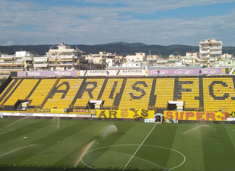 Μπορεί ο κόσμος του Άρη να βρίσκεται εκτός γηπέδου για τον σημερινό κρίσιμο αγώνα της ομάδας, ωστόσο στις κερκίδες του Χαριλάου δεσπόζουν πανό με μηνύματα εμψύχωσης με το «Δείτε τον αντίπαλο μέσα από τα μάτια μας» να ξεχωρίζει.