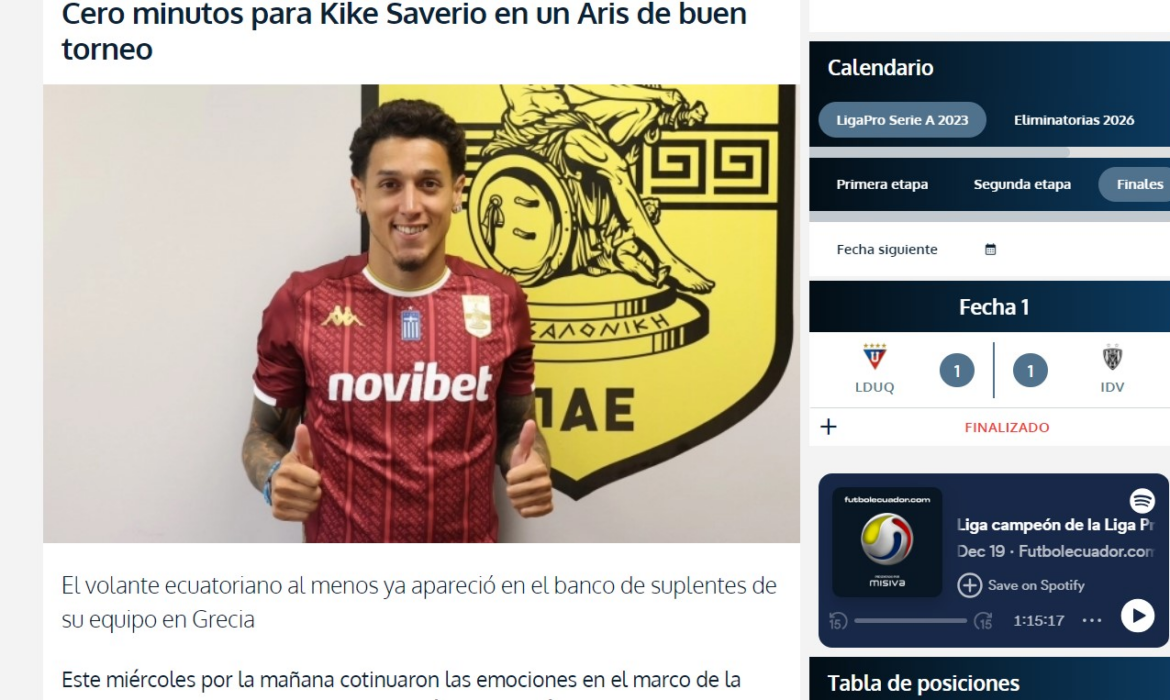 Η ιστοσελίδα futbolecuador… ασχολείται με τον ποδοσφαιριστή των «κιτρινόμαυρων», τονίζοντας την απουσία του στο πρώτο μισό της σεζόν, αλλά και το γεγονός ότι ξεπέρασε το πρόβλημά του και είναι πλέον έτοιμος να αγωνιστεί.