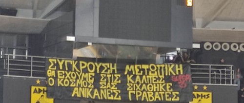 Δεν ακούστηκαν συνθήματα πριν το ματς – Το πανό “ο κόσμος σας σιχάθηκε ανίκανες γραβάτες…” (pic)
