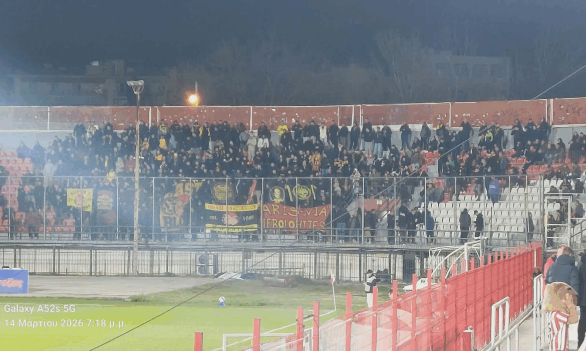 Ο κόσμος του Άρη έχει πάρει τη θέση του στο γήπεδο των Σερρών, προκειμένου να στηρίξει το σύνολο του Μιχάλη Γρηγορίου, έτσι ώστε αυτό να φτάσει στο τρίποντο.