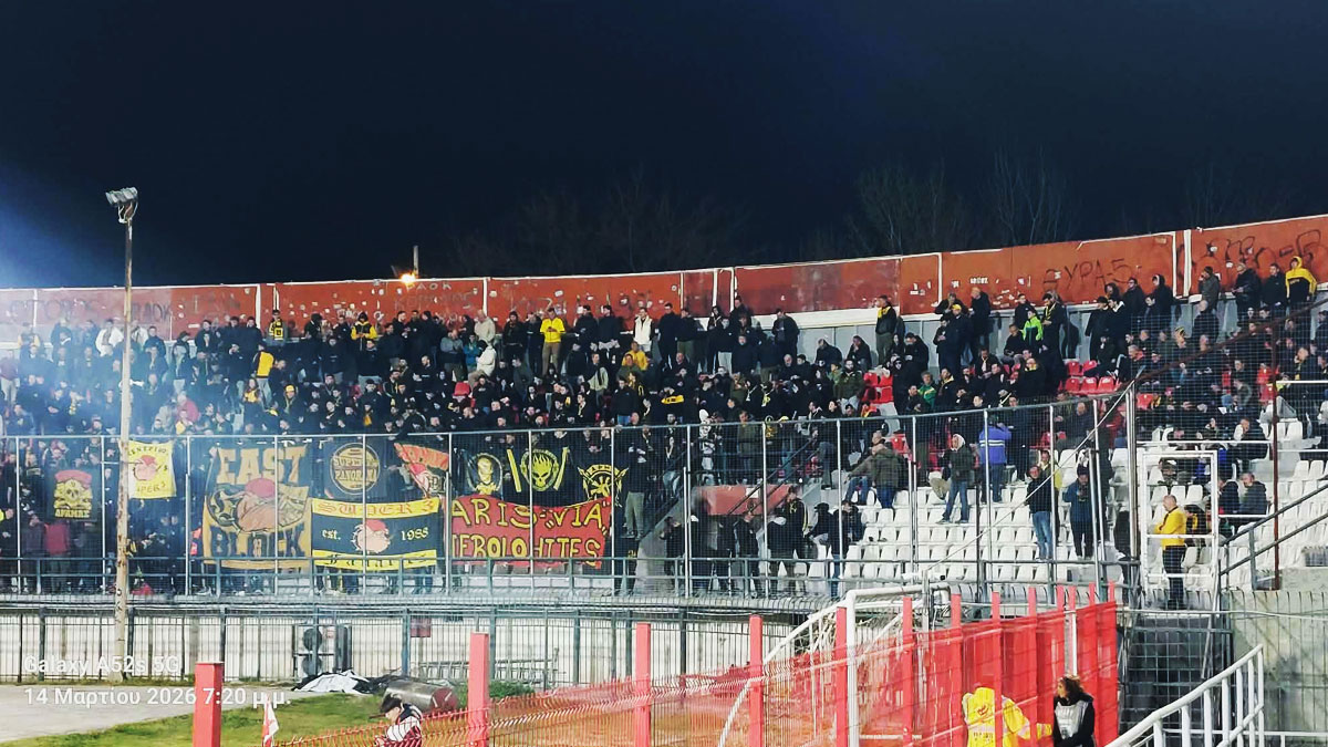 Ο κόσμος του Άρη έχει πάρει τη θέση του στο γήπεδο των Σερρών, προκειμένου να στηρίξει το σύνολο του Μιχάλη Γρηγορίου, έτσι ώστε αυτό να φτάσει στο τρίποντο.
