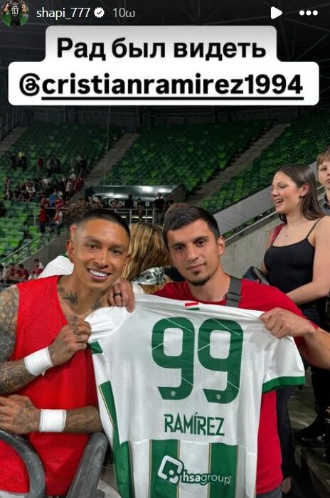Ο λόγος που παρευρέθηκε στον παιχνίδι δεν ήταν απλά η αγάπη του για το άθλημα, αλλά και η παρουσία στους γηπεδούχους του Κριστιάν Ραμίρες, με τον οποίον τους συνδέει φιλία από τότε που αμφότεροι αγωνιζόταν για λογαριασμό της Κράσνονταρ.