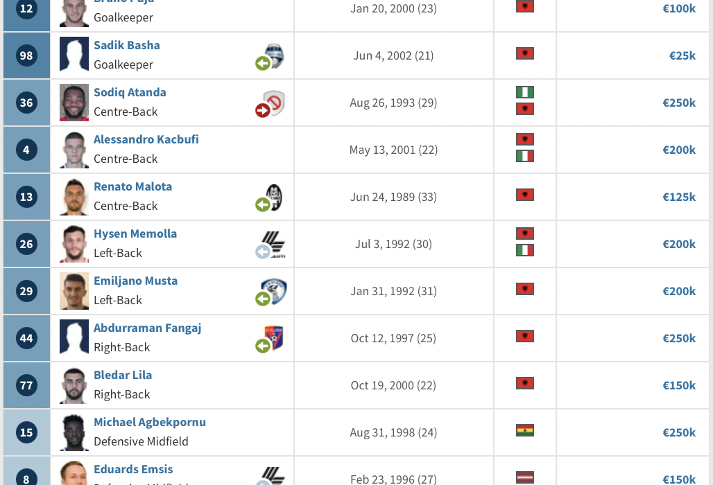 Το ρόστερ της αλβανικής ομάδας: